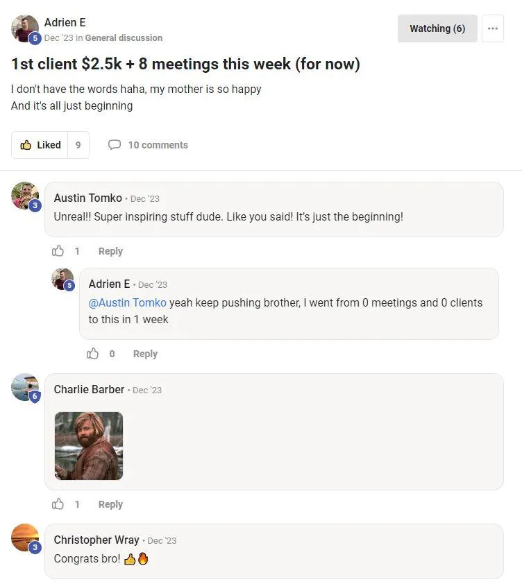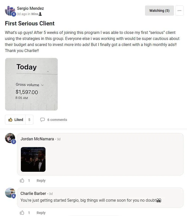 Every Sunday you have the ability to hop on a call and learn the newest insights for scaling agencies & B2B offers. I cover topics like sales, setting, personal branding, fulfillment and you can ask me your best questions.